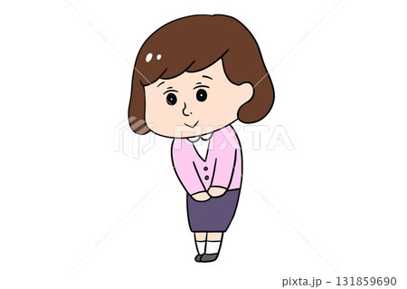 經認證的女性護理人員鞠躬的插圖(上半身)