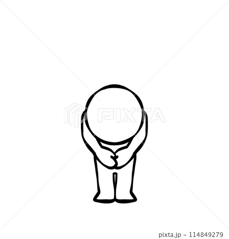 一個穿著西裝的男人全身鞠躬的單色插圖