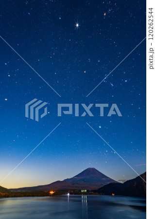 [山梨縣]月夜的本棲湖和富士山