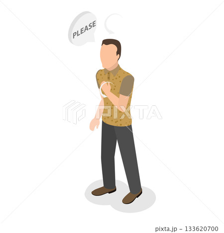 3D Isometric Flat Vector Illustration of Sign Language, Character Showing Simple Sign Language Phrases, Greetings, Thank You, Help, Family. Item 4