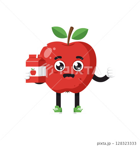 Red apple character holding apple juice carton with cute facial expression vector illustration