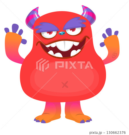 Cartoon funny monster character design with funny face expression. Halloween vector illustration