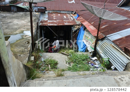 Urban Decay Expressed Through Abandoned Corrugated Metal Shacks and Rusted Structures
