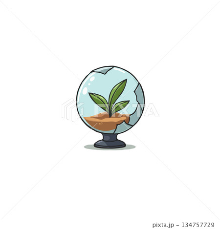 Fragile beginnings: A seedling emerges from a broken sphere, symbolizing growth and resilience
