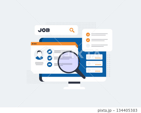 Online job search hiring recruitment platform connects employers and candidates. Digital job portals with vacancy listings, supporting selection workflow, modern career matching. Vector illustration