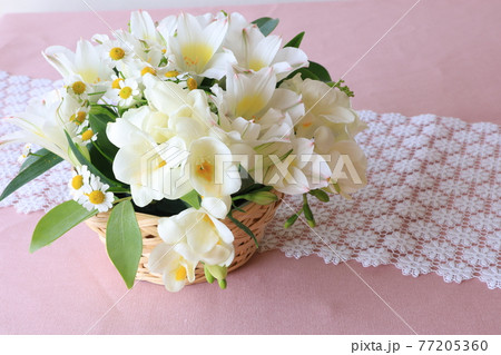 抗衰老草本·新鮮幹洋甘菊花/亞麻袋回頂上垂直位置在白色平板上