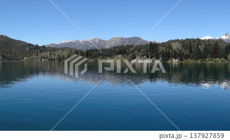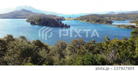 Nahuel Huapi lake, surrounded by green vegetation,in a southern Argentine landscape.