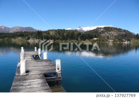 Beautiful panoramic view of the pier on the Nahuel Huapi lake, in Bariloche.