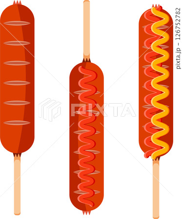 3種法蘭克福香腸插圖集|原味、番茄醬、芥末醬