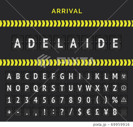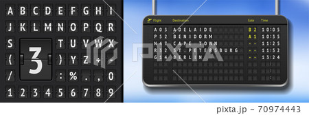 Vector airline departure board isolated. Flip airport board template. Black 3D airport timetable with analog scoreboard font