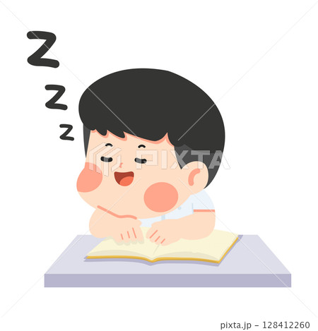 Cartoon Boy Sleeping at Desk with Book