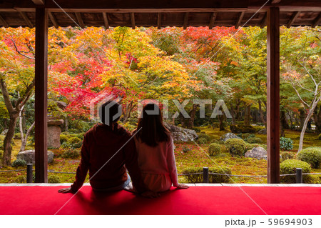 Young couple traveler looking beautiful autumn in