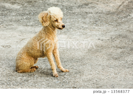 Domestic brown stray dog sitting and absent-minded