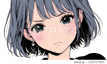 一個可愛的小女孩吸鼻子和生氣的表情符號圖標面部表情白色背景向量
