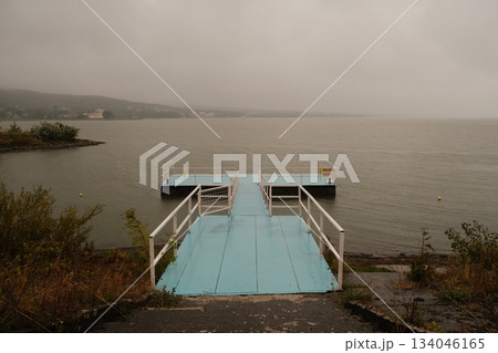 Remote Coastal Dock At Misty Waterfront