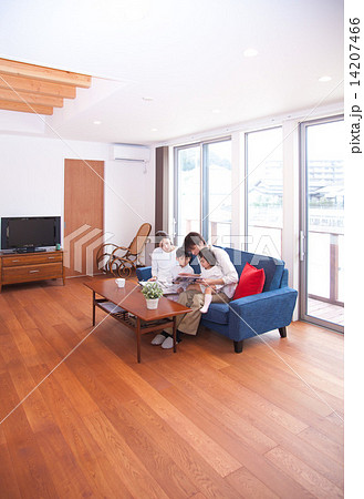 使用平板終端的三個人家庭家庭隊父親母親女兒複製空間好家庭