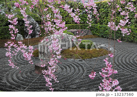 在Shohoji,京都的石庭院和紅色分支櫻花