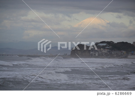 洶湧的大海和富士山