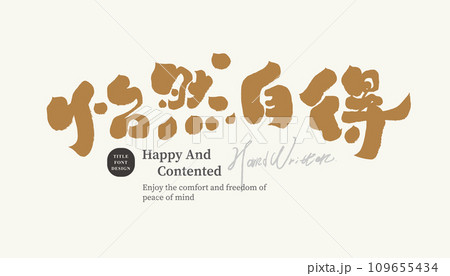 “怡然自得”,形容心境的常用句,特色手寫字體,標題字體設計。