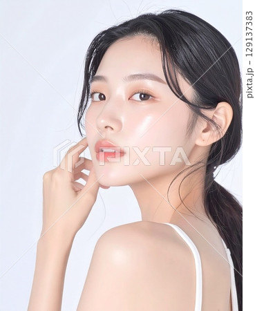 自然的妝容凸顯了這位日本年輕女性美麗白皙的皮膚和勻稱的五官。