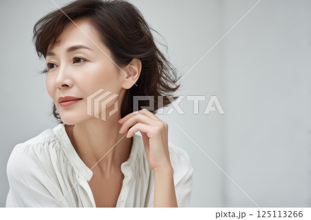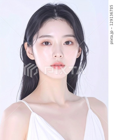 特寫鏡頭展現了一位日本女性的自然表情,她白皙透明的皮膚引人注目。