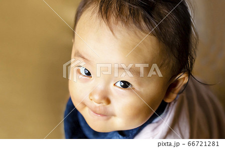 從上面看著孩子的可愛笑容