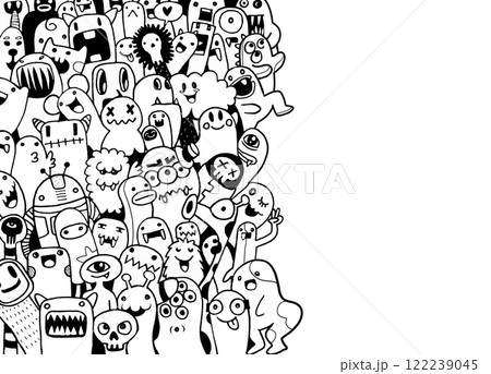 Minimalist Hand Drawn Doodle with Cute Monsters and Fun Characters