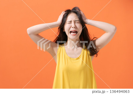 Anxious individual showing distress, Person holding head in signs of mental and emotional tension