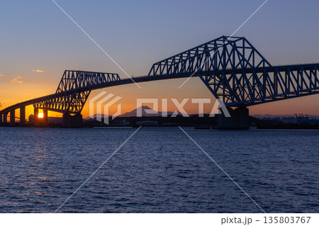 黃昏時分,東京門大橋與富士山的輪廓交相輝映。