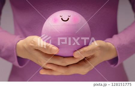 Hands gently holding Smiling Circle face. Mental health, emotional balance,inner peace through meditation and mindfulness. symbolizing good mental and self-awareness