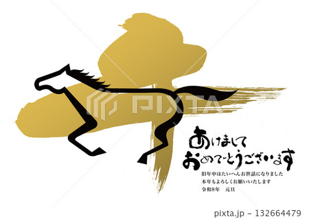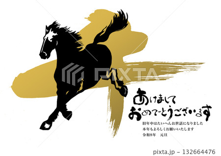 水墨埴輪馬(馬墨風格)鋼筆書法新年快樂。