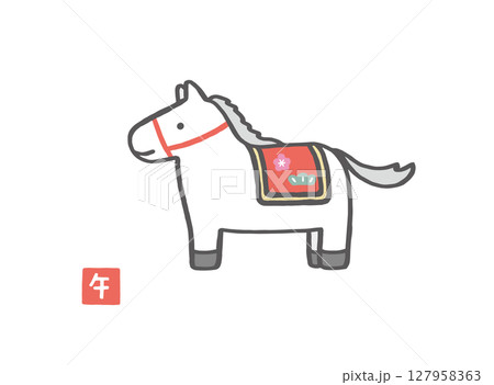 2020年馬年新年賀卡材料 - 白色裝飾馬的插圖 - 線條畫