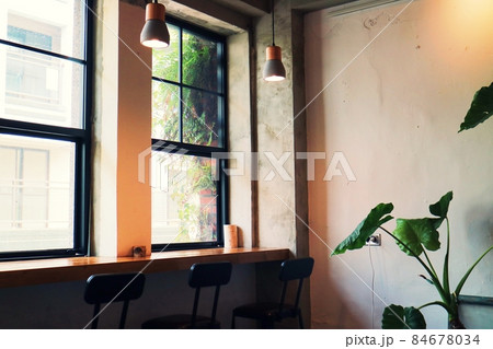屋內一角 兩扇大窗透著陽光灑落近來 角落還有植物