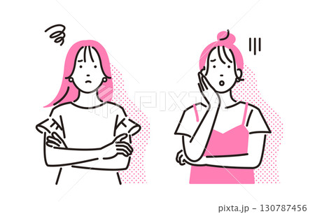 一群年輕男女/情侶雙臂交叉,擺出憂心忡忡的姿勢【人物向量圖素材】