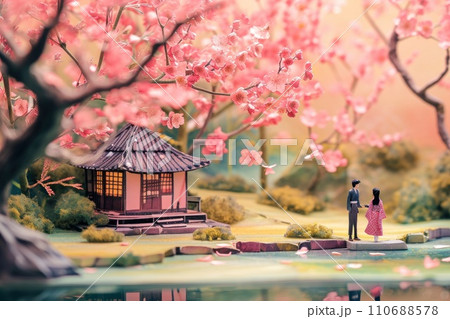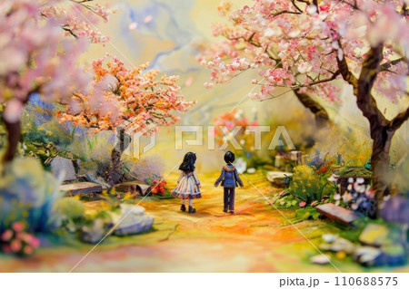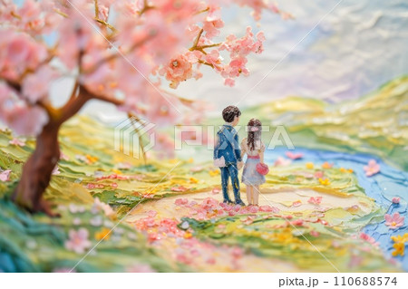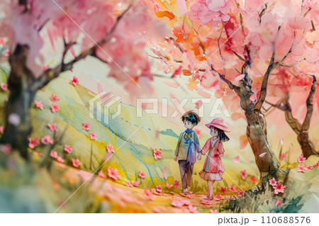 Cute watercolor paint of love couple on a date in spring.
