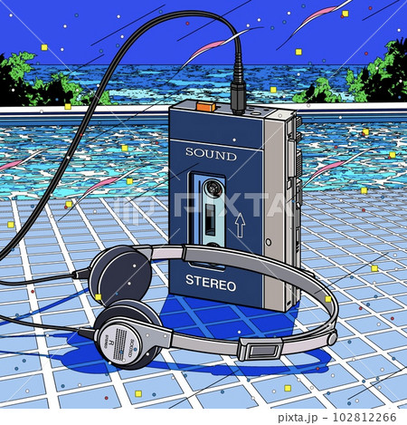 Y2k neo gothic emo teen girl headphones esport cyber comic blue sketch line icon vector flat