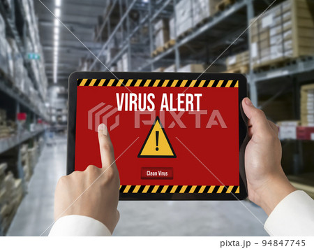 Virus warning alert on computer screen detected modish cyber threat