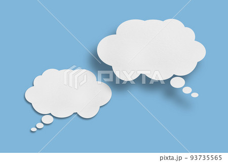 white cloud paper speech bubble shape against blue background