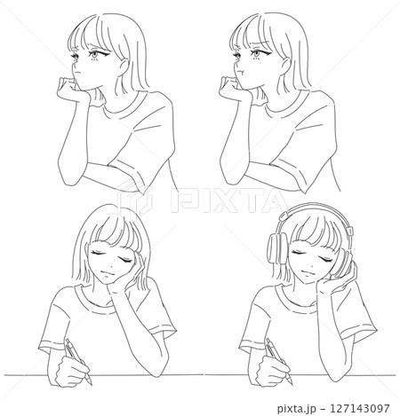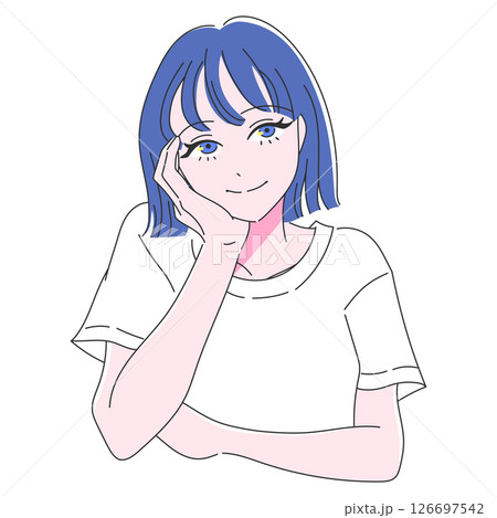 一位閉著眼睛、用手托著下巴的女性的插畫素材
