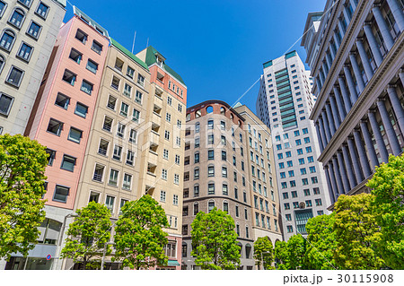 日本東京城市景觀的新景觀。眺望汐留和Emeraldas的建築物