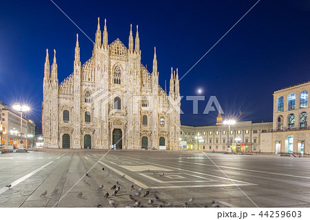Milan Italy, sunrise city skyline at Milano Duomo Cathedral empty nobody