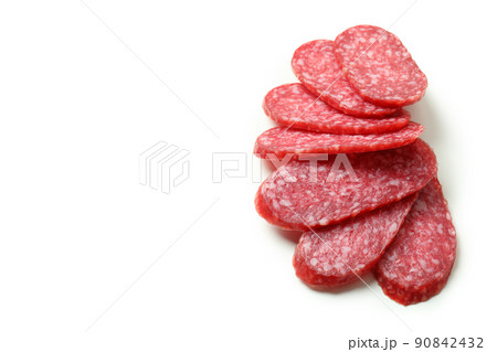 Sliced schwarzwald ham. Dried prosciutto ham isolated on white background.