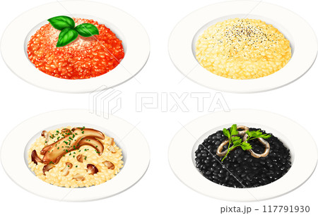Mushroom Risotto Cooking and Culinary Ingredients Vector Set