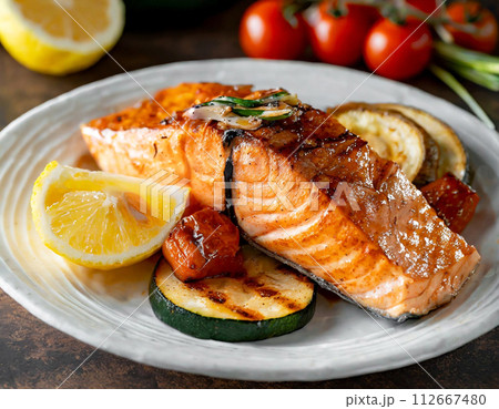 豪華餐盤,附炒鮭魚和烤蔬菜