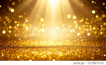 金色閃耀的背景和閃亮的聚光燈營造出華麗的場景