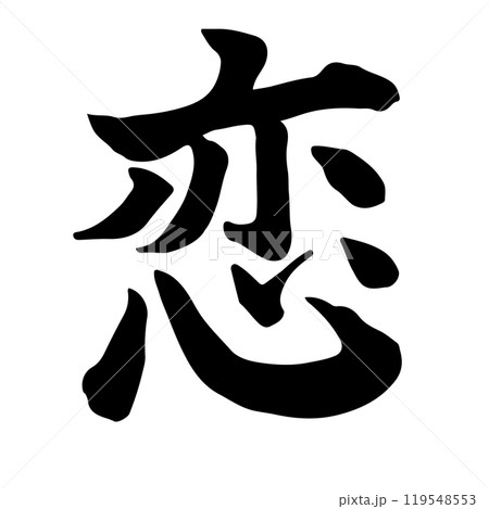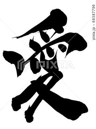 毛筆文字材料的手寫[愛] 用墨水書寫的愛漢字插圖