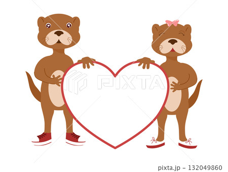 Cute Cartoon Otter Couple Holding a Blank Heart Sign