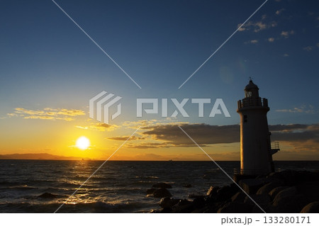 秋日落日和伊拉戈角燈塔