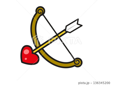 Vector heart with bow and arrow. Retro icon of character with face. Anthropomorphic personage for Valentines day or love holiday. Marriage and wedding sign. Romantic and affection person. Cupid.