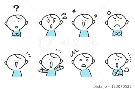 一組各種男人情緒的表達:對不起,失望,燈泡,驚慌失措